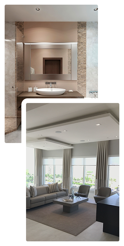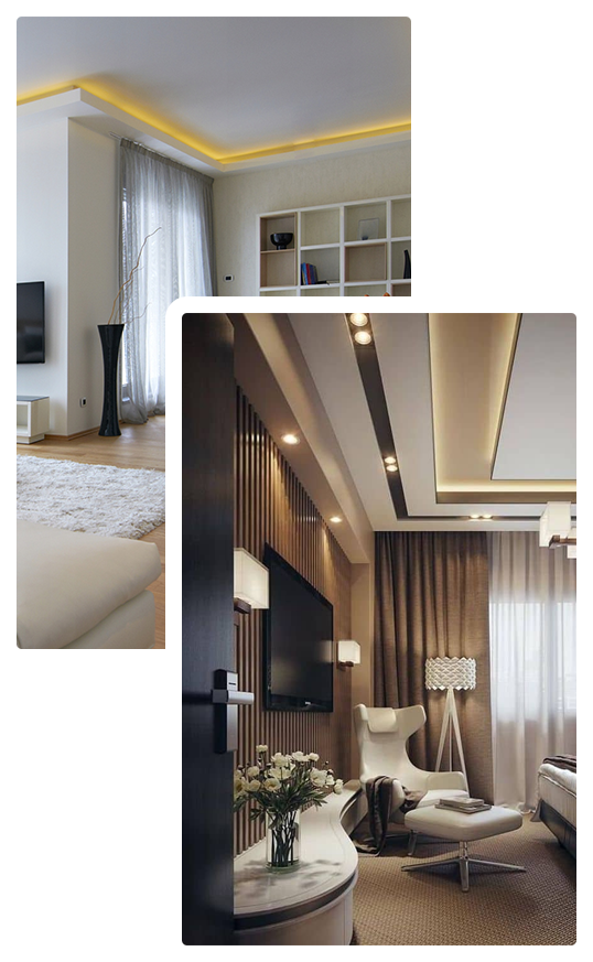 Από χωρίσματα γυψοσανίδας, ψευδοροφές, κρυφούς φωτισμούς, γύψινες διακοσμήσεις έως και επενδύσεις τζακιών και ειδικές κατασκευές αποκλειστικά μελετημένες για τον χώρο σας.